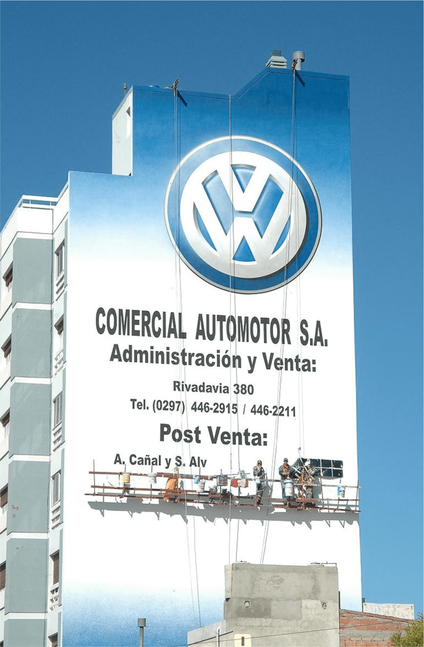 Somos especialistas en trabajos de altura, pintura de edificios y cartelería espectacular en medianeras de grandes torres, extremando el uso de todas las medidas de seguridad.